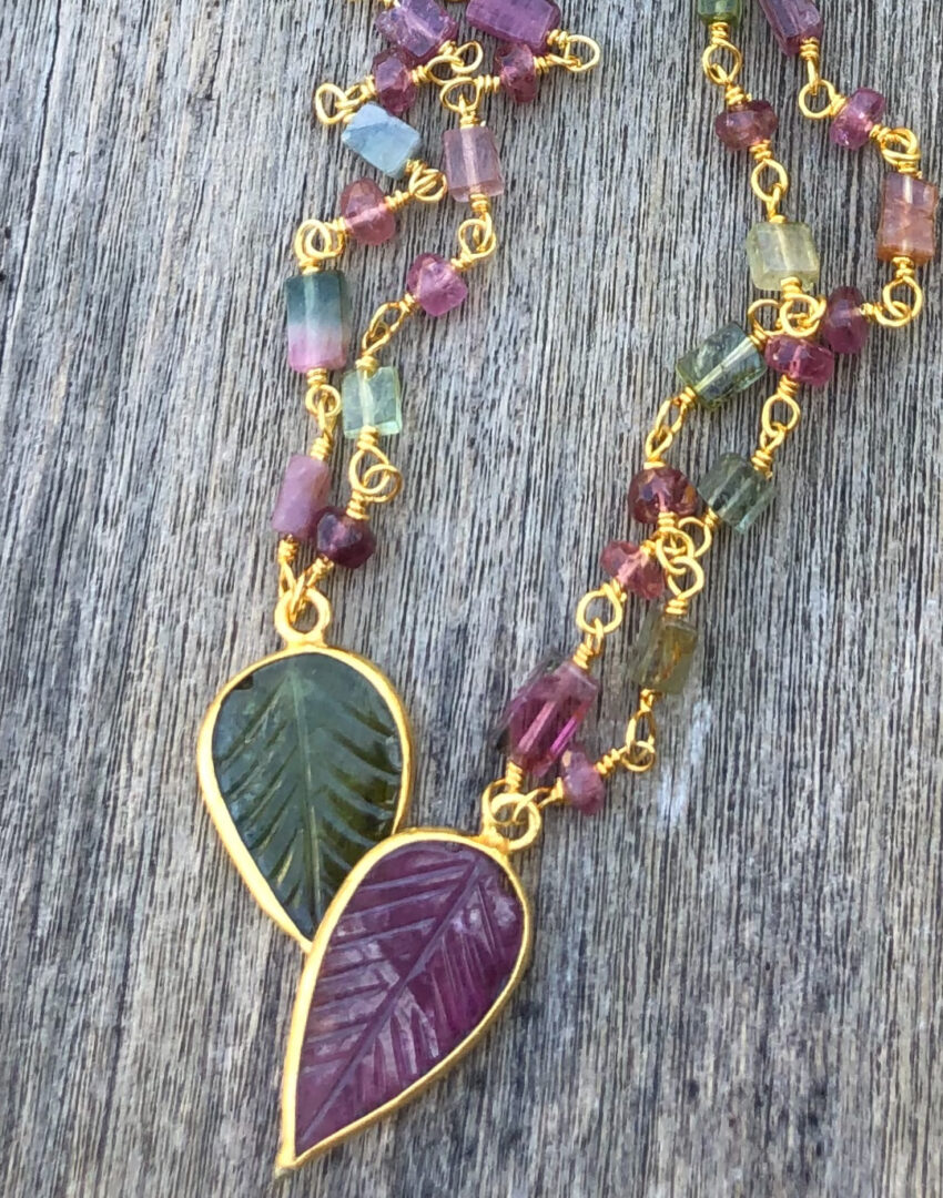 105.00 €Choix des options Ce produit a plusieurs variations. Les options peuvent être choisies sur la page du produitLong sautoir tout en pierres semi précieuses et son pendentif serti de part et d’autres de pierres grenat sur le dessus et onyx vert dessous...