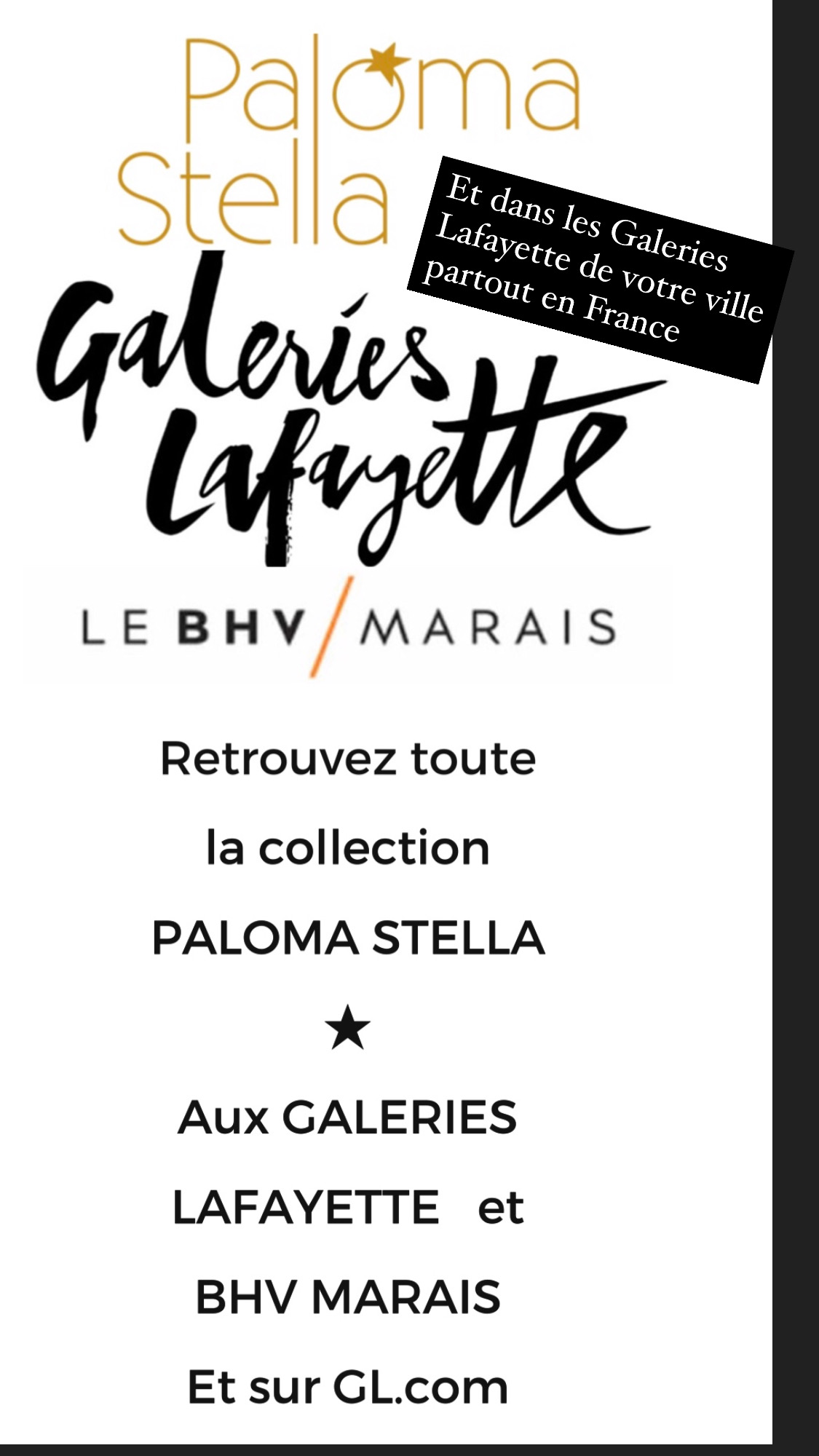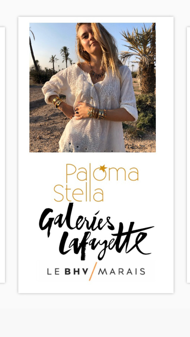 Retrouvez depuis 2020 une large selection de bijoux Paloma Stella aux BHV Paris et Galeries Lafayette Beaugrenelle ainsi qu’un peu partout en province (dans plus de 25 Galeries Lafayette de votre région en France et au Luxembourg) et également sur GL.com.