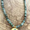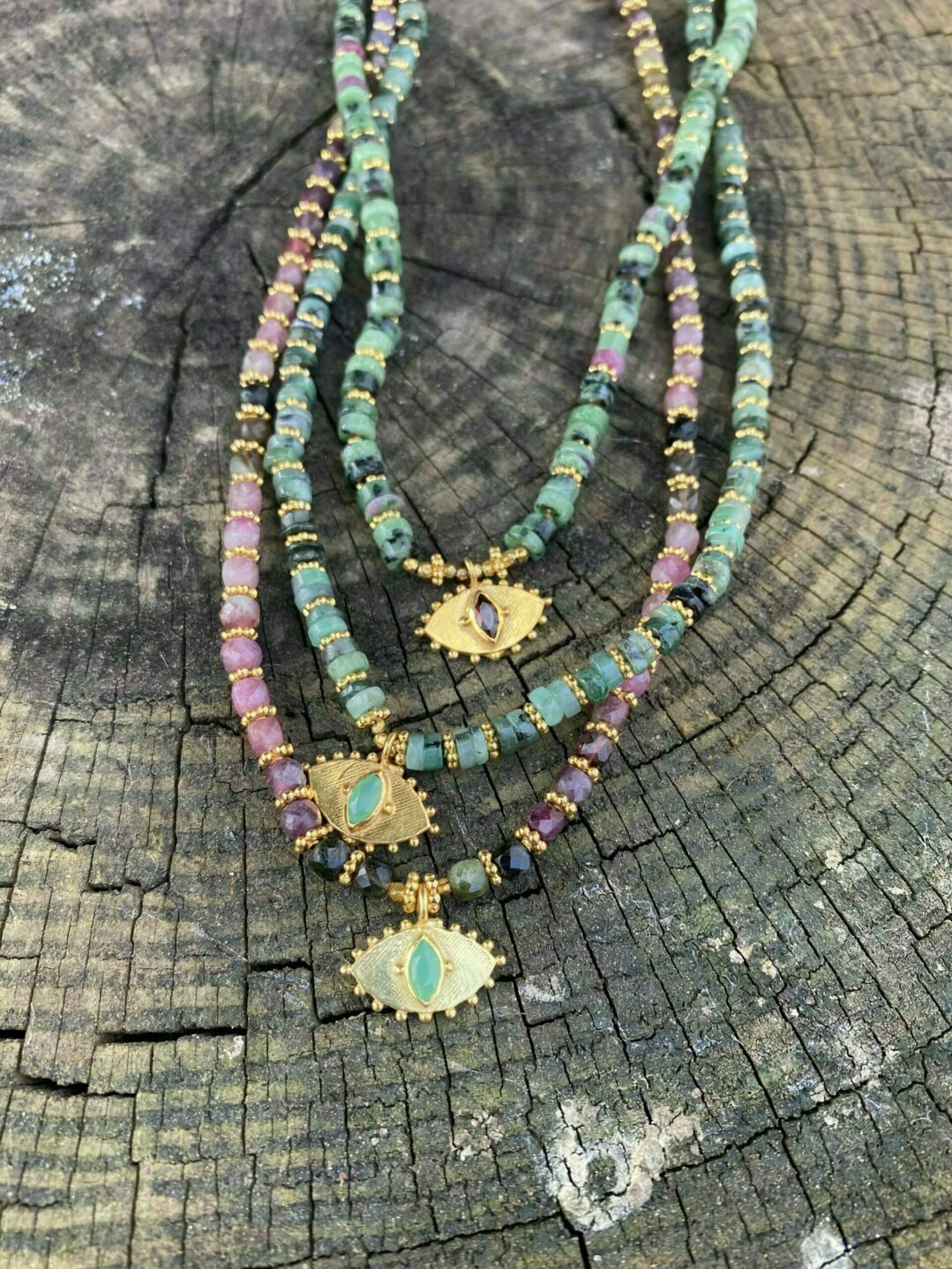 Collier tout en pierres semi-précieuses et son joli pendentif oeil serti avec sa pierre au centre Pendentif est plaqué Un style Chic tendance et voyageur pour ce collier qui se mixe à toutes les collections.